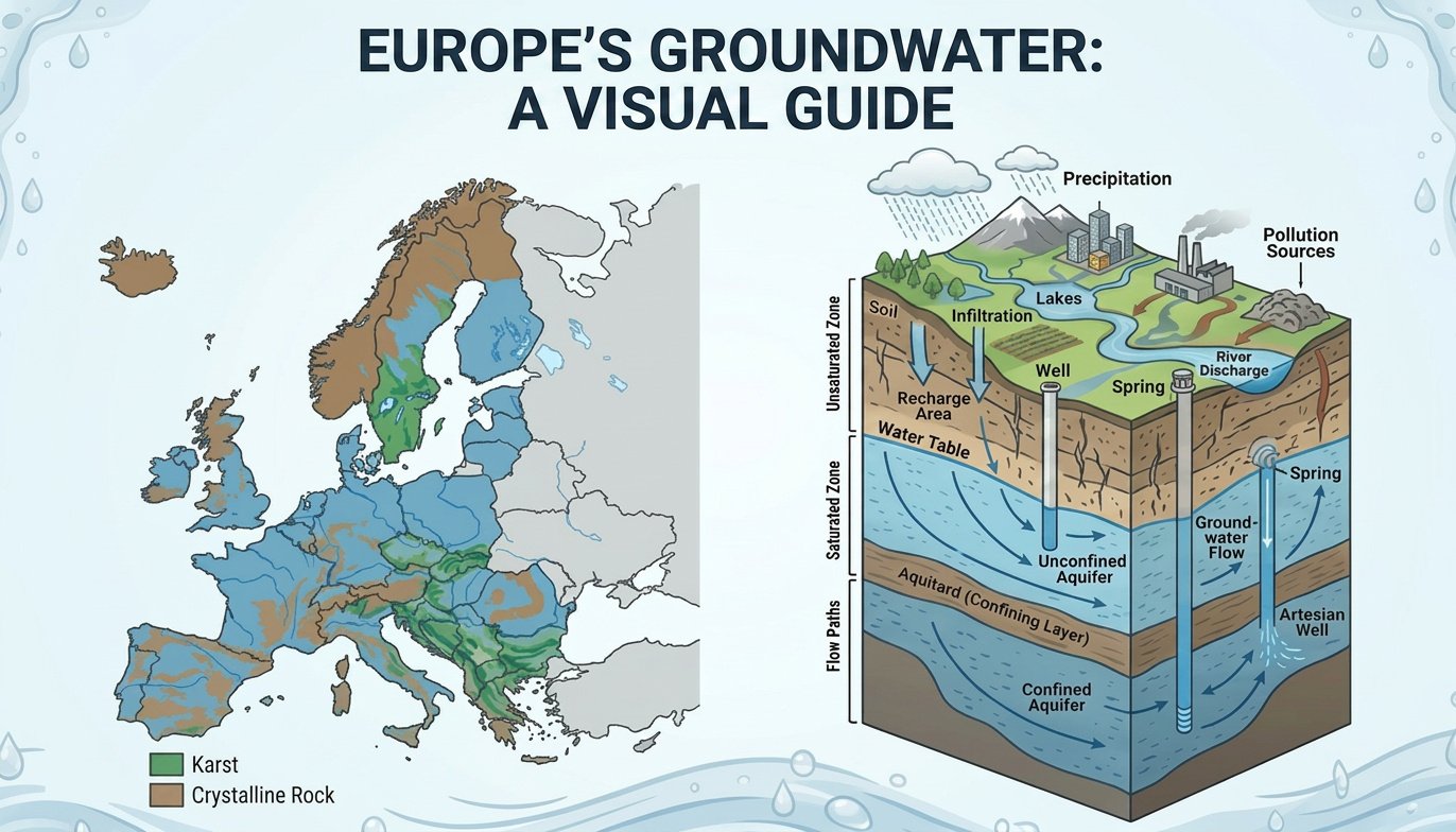 Europe's unique geology has gifted it with abundant groundwater: the alluvial fans of the Alps, the gravel beds of the Rhine Valley, and the glacial deposits of Northern Europe are all natural aquifers of exceptional quality.